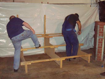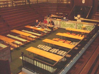 | Am Dienstag wurden Tische und Bänke für den kommenden Tag aufgebaut, die Nummern an den Käfigen angebracht sowie weitere Vorarbeiten geleistet. Auch die Ehrentische wurden aufgestellt | |