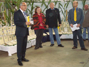 | Auch der Hausherr der Tierzuchthalle Herr Roßberg überbringt Grußworte und wünscht der Schau einen guten Verlauf | Die Grüße des Landesverbandes überbringt seit eher der LV- und ZDRK-Jugendleiter Hans-Dieter Funk |